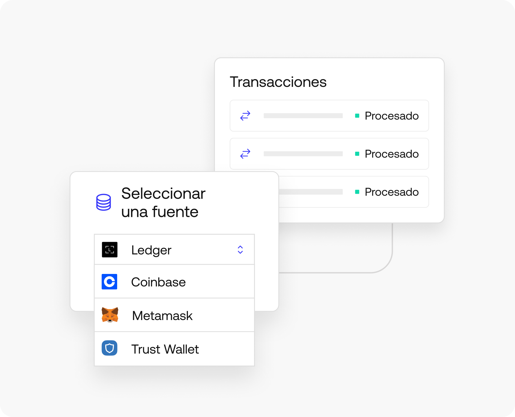 Estandariza y concilia transacciones en redes blockchain, custodios, plataformas de trading y libros de contabilidad internos.