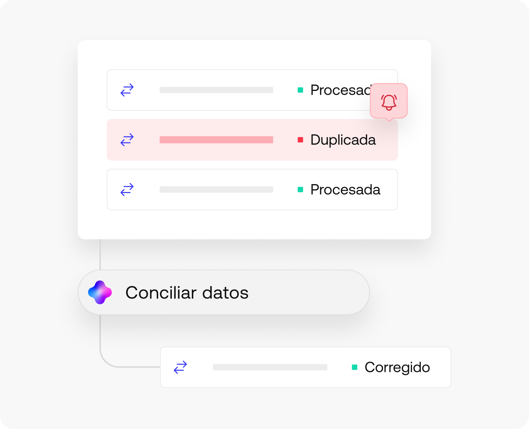 • Concilia datos de transacciones multidireccionales, incluso cuando falten datos o estos no estén claros