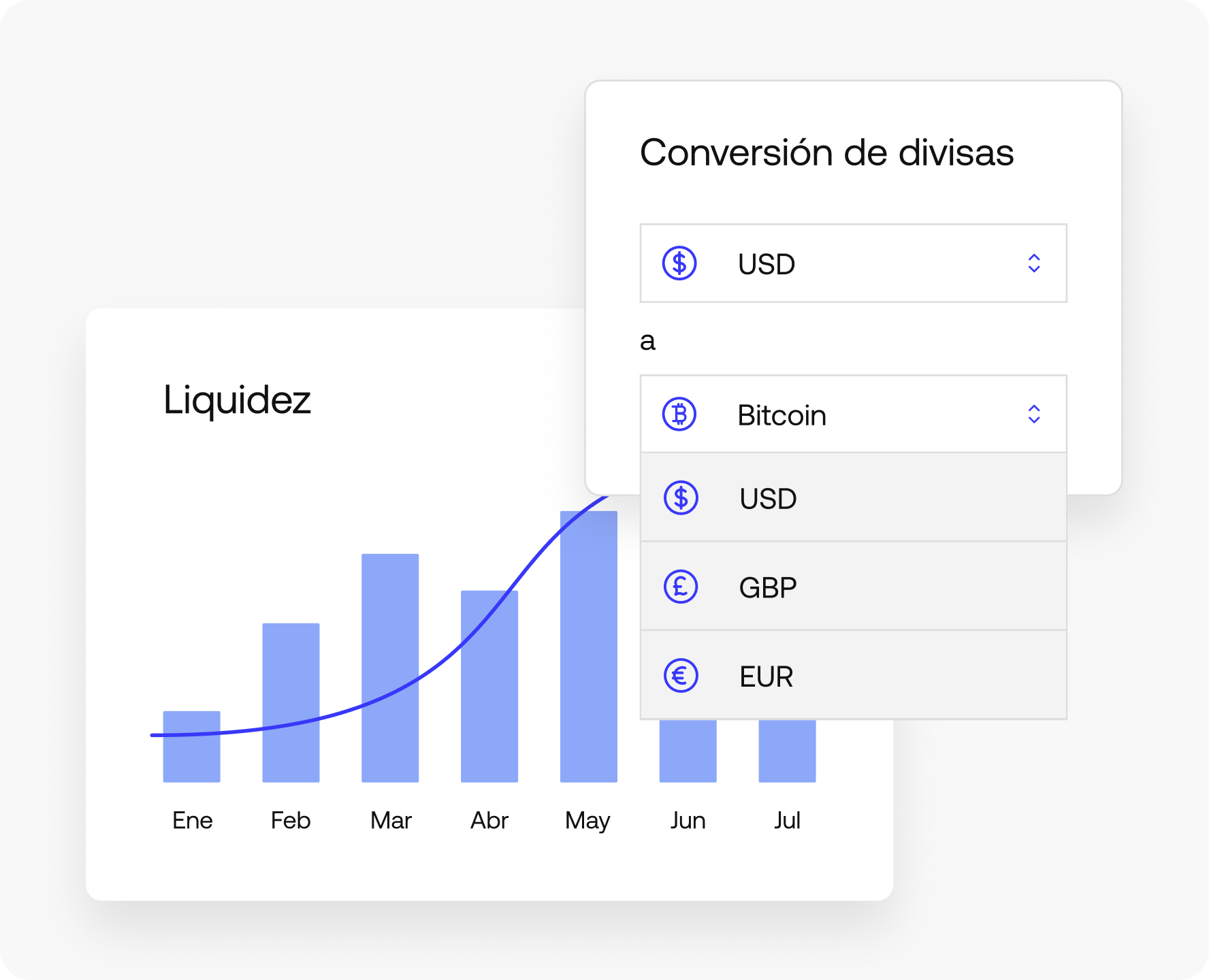 • Minimiza la exposición al riesgo de cambio y de cripto con la conciliación y conversión en tiempo real