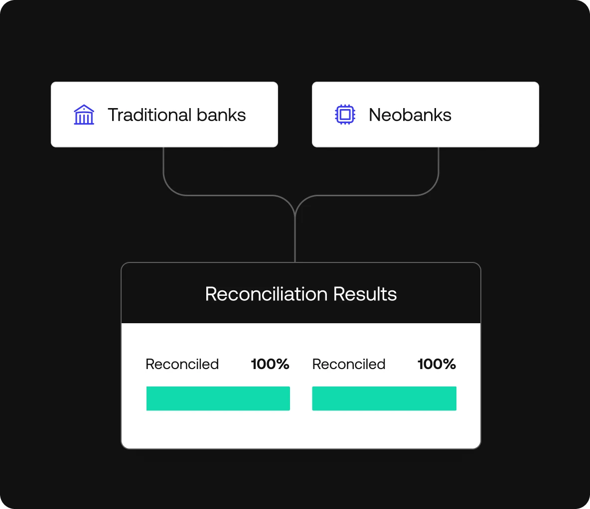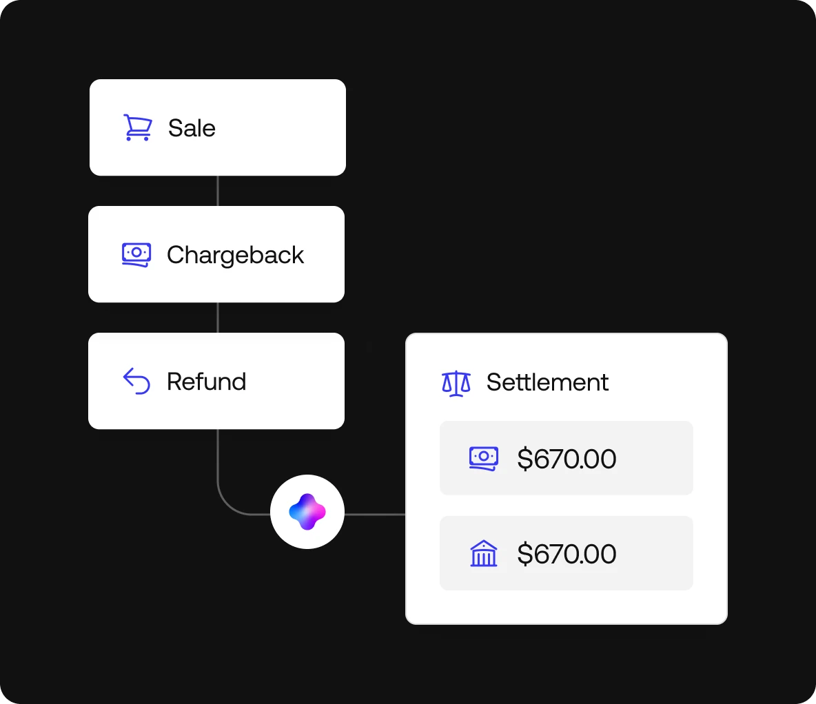 Match complex, multi-way transactions across payment partners and reconcile settlement with card networks automatically.