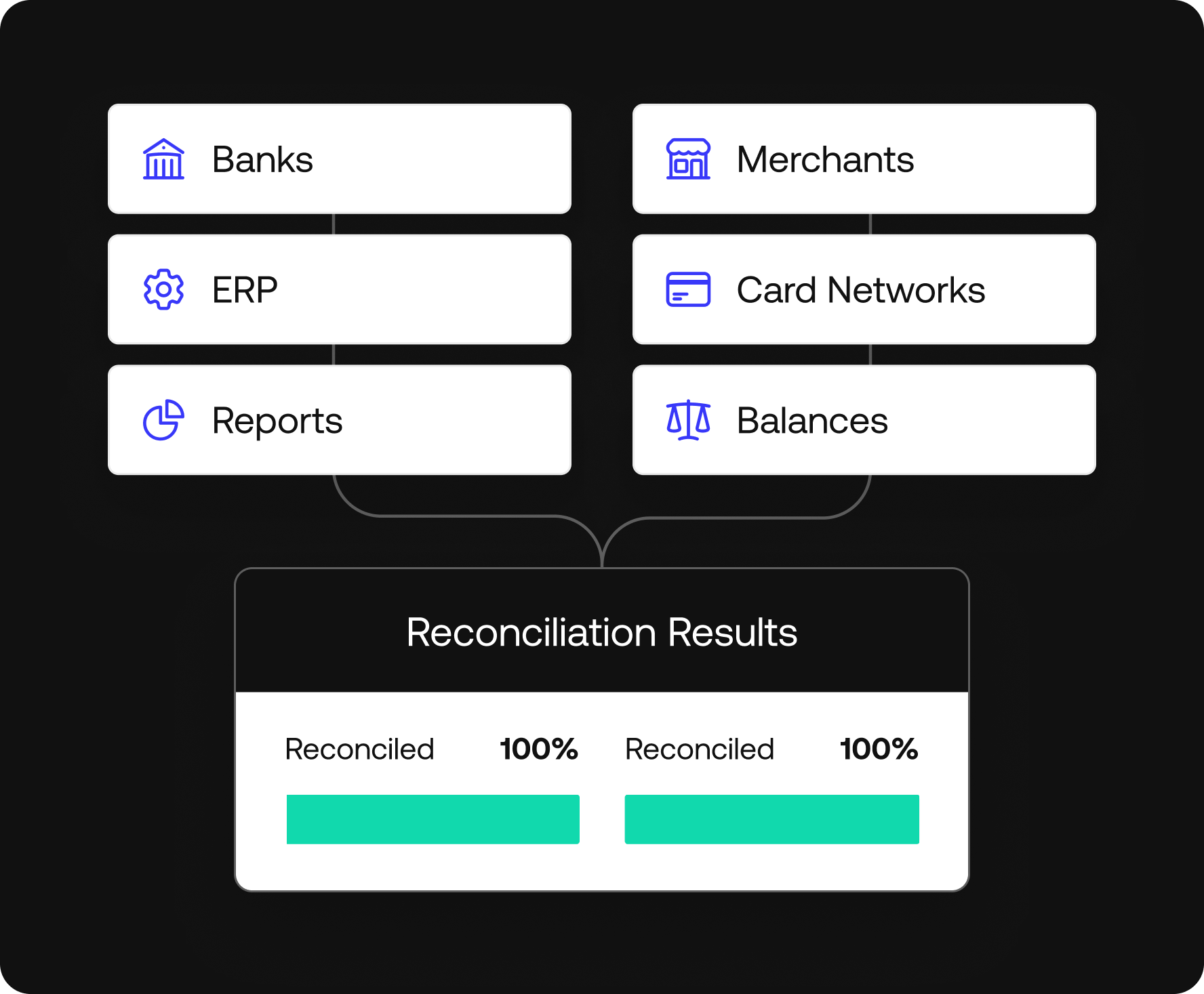 Standardize and reconcile transactions with records across banking partners, merchants, payment platforms, and internal systems with AI-powered efficiency.