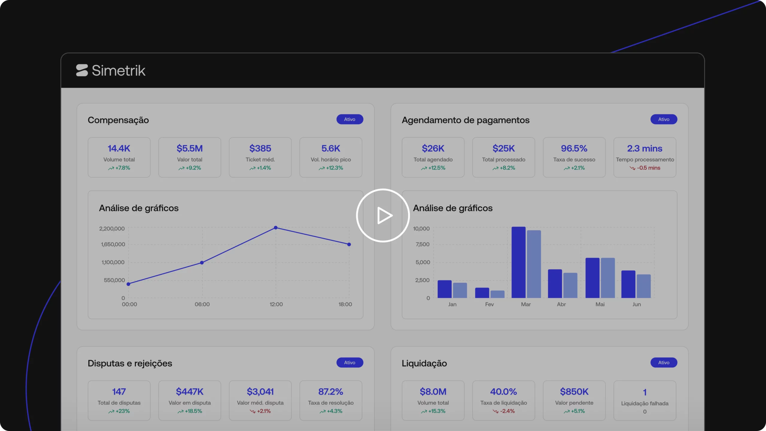 Alertas em tempo real para discrepâncias e fluxos de resolução automatizados para chargebacks, reembolsos e contestações.