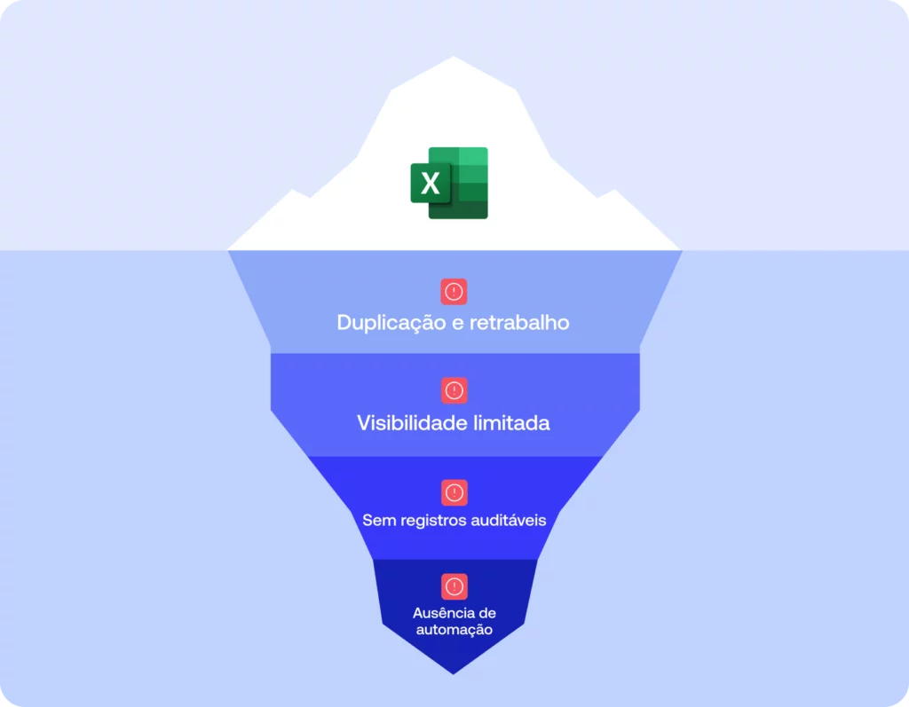 As planilhas são ferramentas flexíveis e rápidas no início. No entanto, em grande escala, elas geram custos ocultos que se acumulam diariamente.
