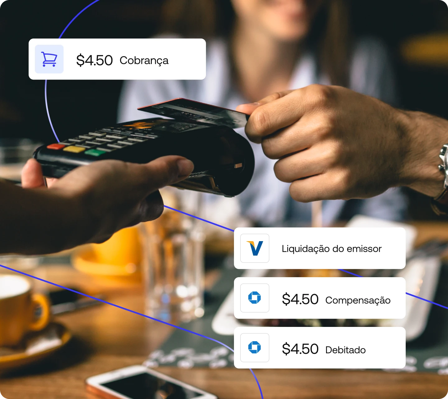 Concilie transações complexas, de múltiplas partes, entre seus parceiros de pagamento e concilie automaticamente as liquidações com as redes de cartões