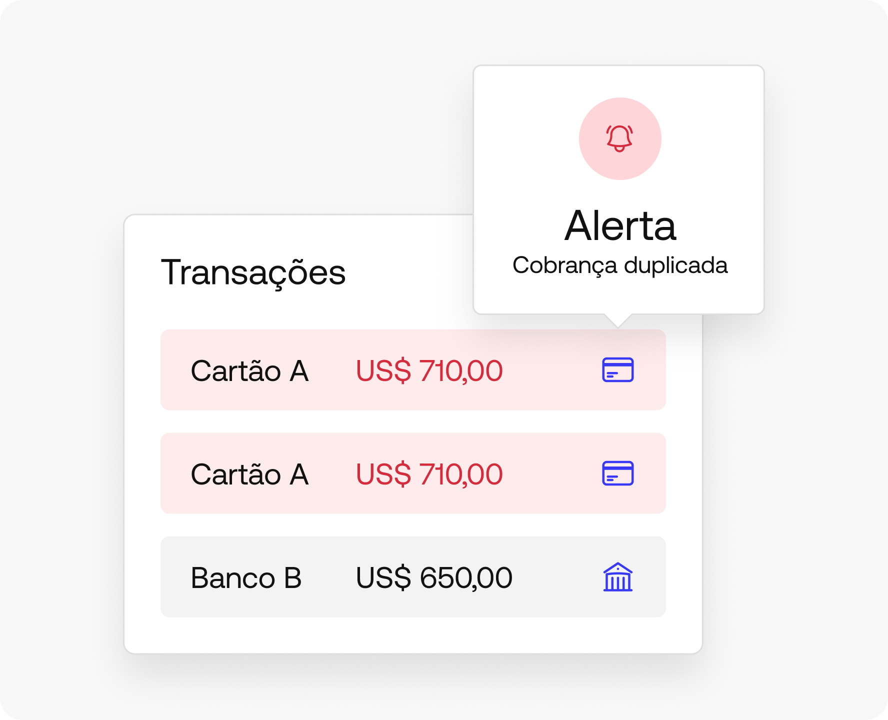 • Detecte cobranças duplicadas e tarifas inesperadas