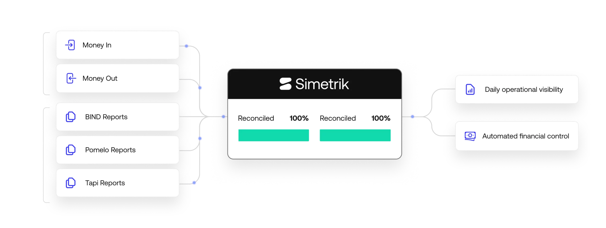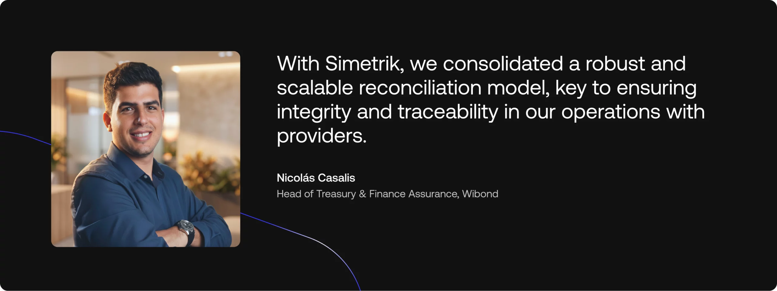 Wibond needed certainty on every transaction flowing through its platform. With Simetrik, it implemented an automated reconciliation model that matches its backend against each provider’s reports by unique identifier—traceable, scalable, and operational from day one.